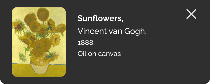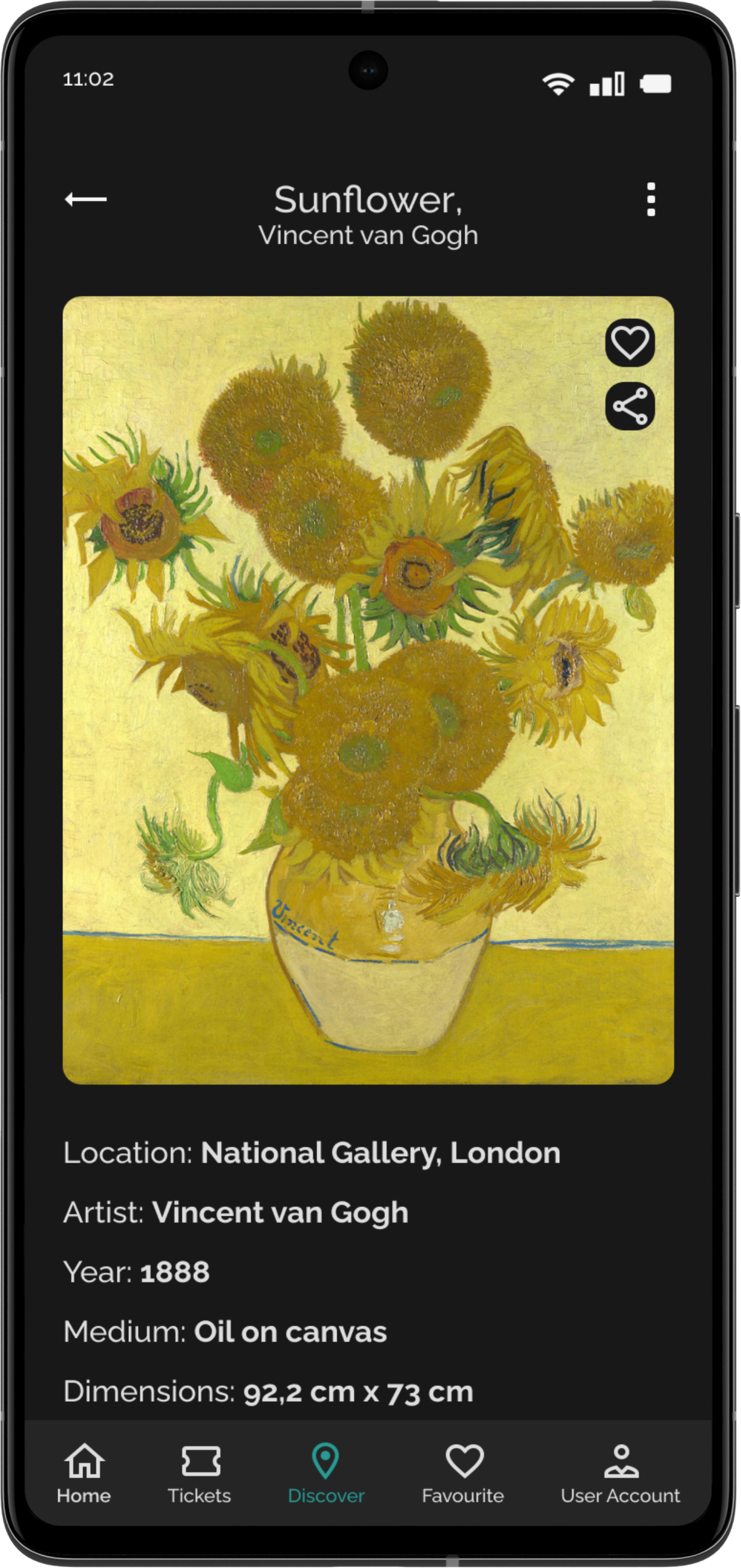 Thanks to the catalogues of works of art in the app, users can easily learn more about them. Each work of art is assigned to an artist.