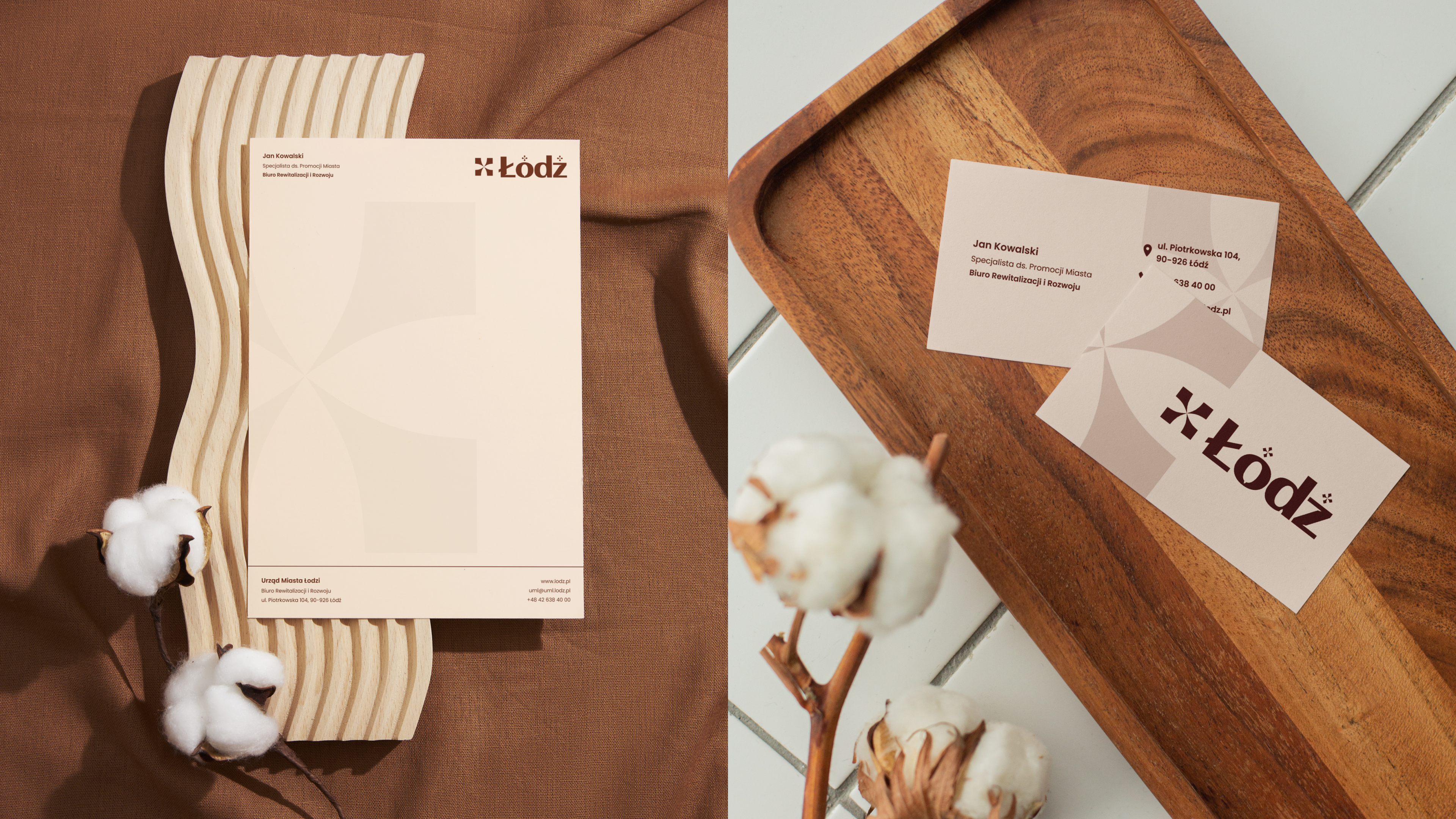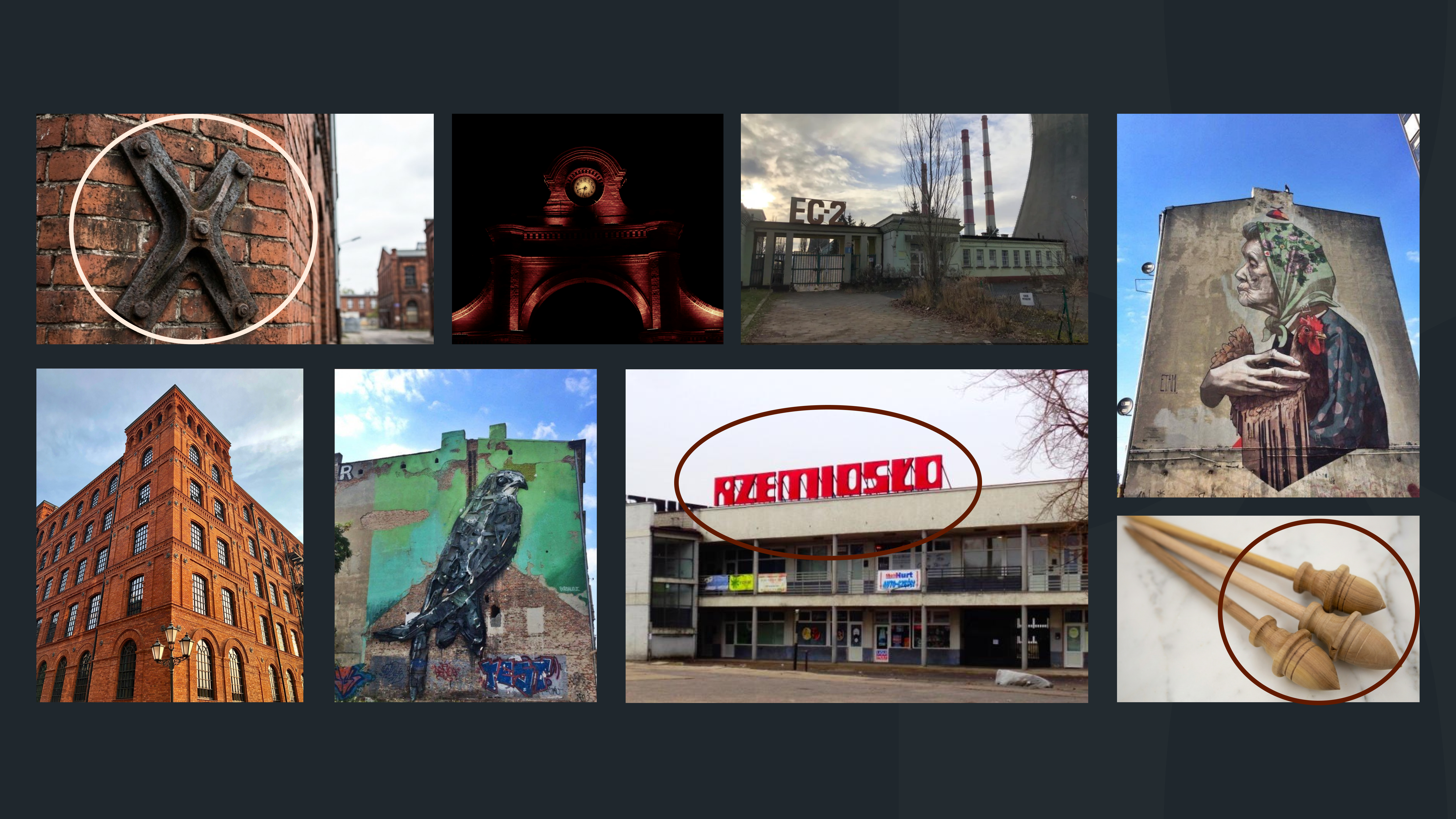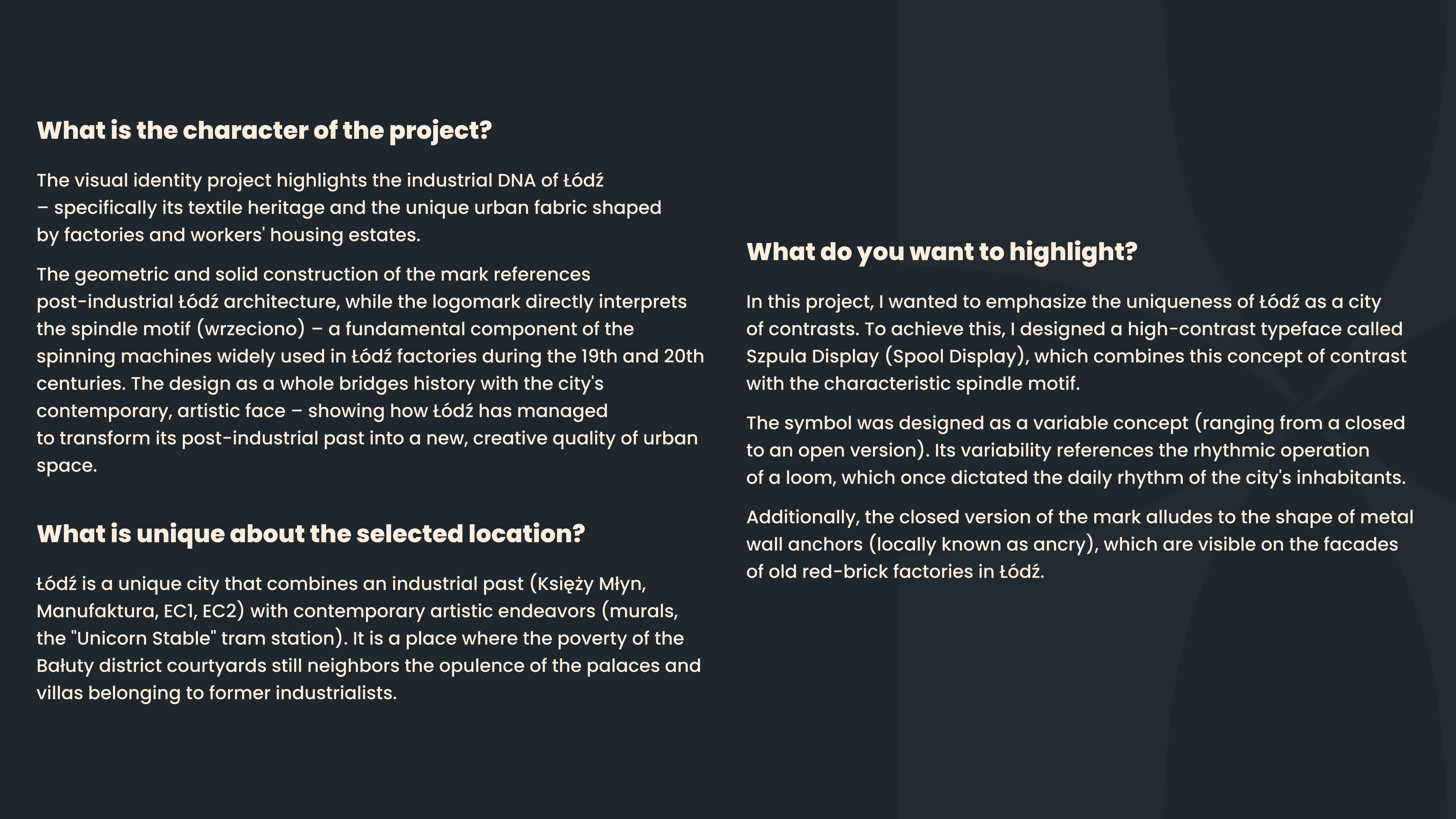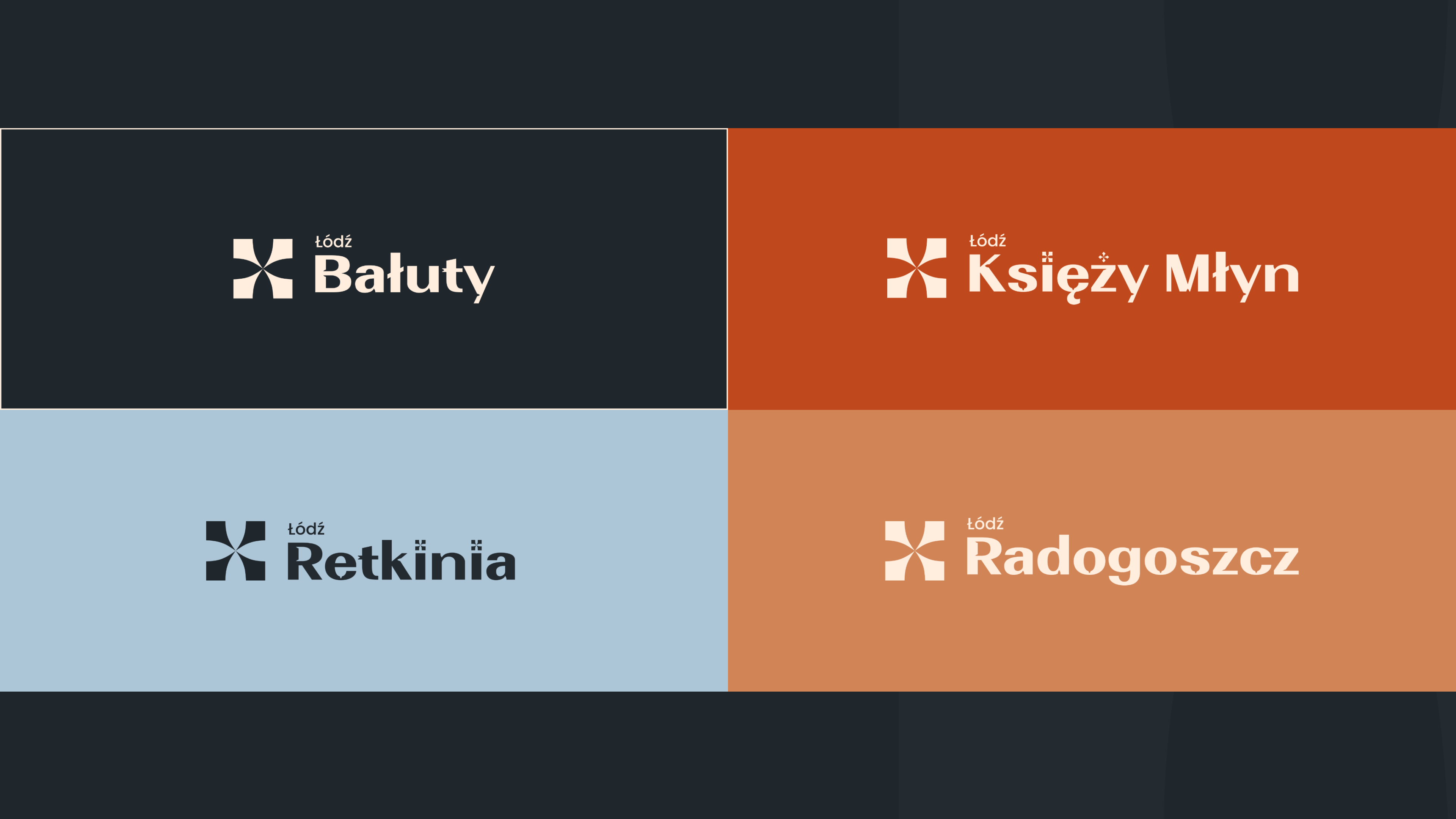 The project draws inspiration from the industrial architecture of Łódź, vintage typographic signboards, and the spindle motif—a key symbol of the city's textile history.