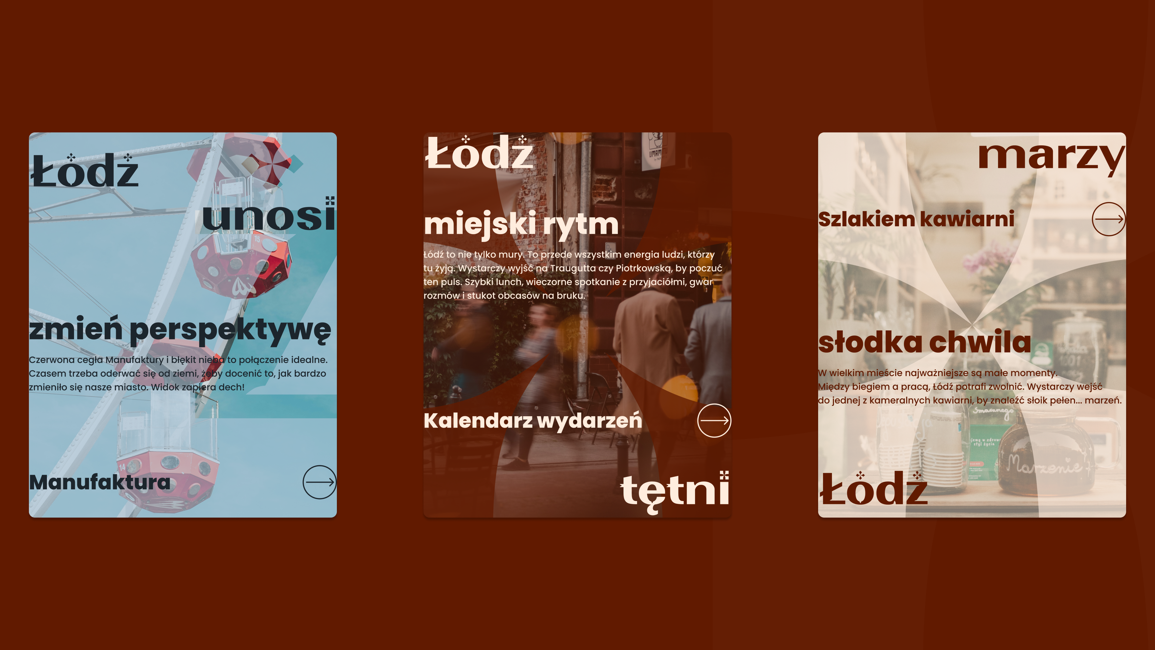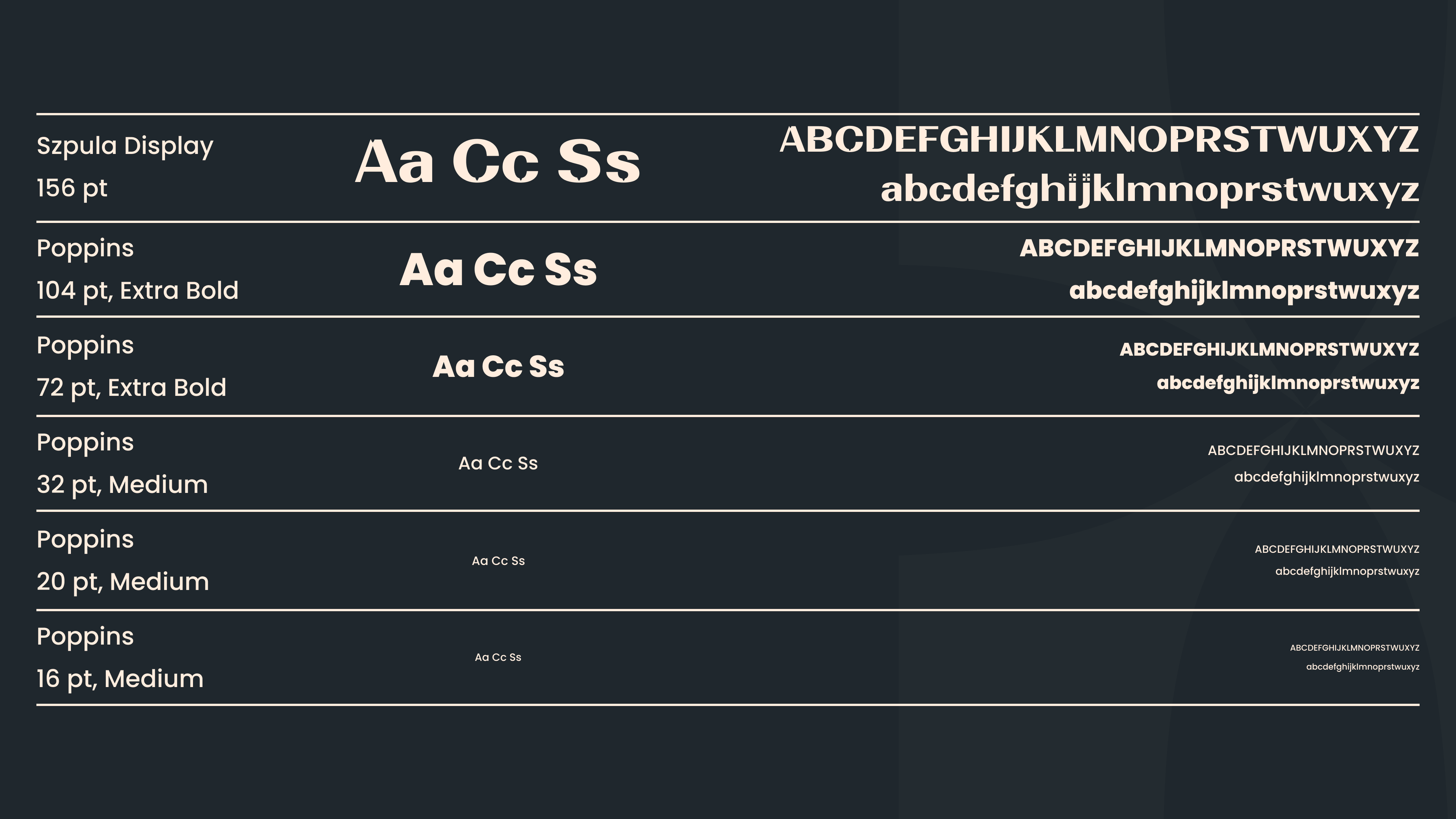 The project features Szpula Display, a custom font I designed from scratch in FontLab. Given its distinctive character, I used it exclusively for large headers, while Poppins was selected for the body text.