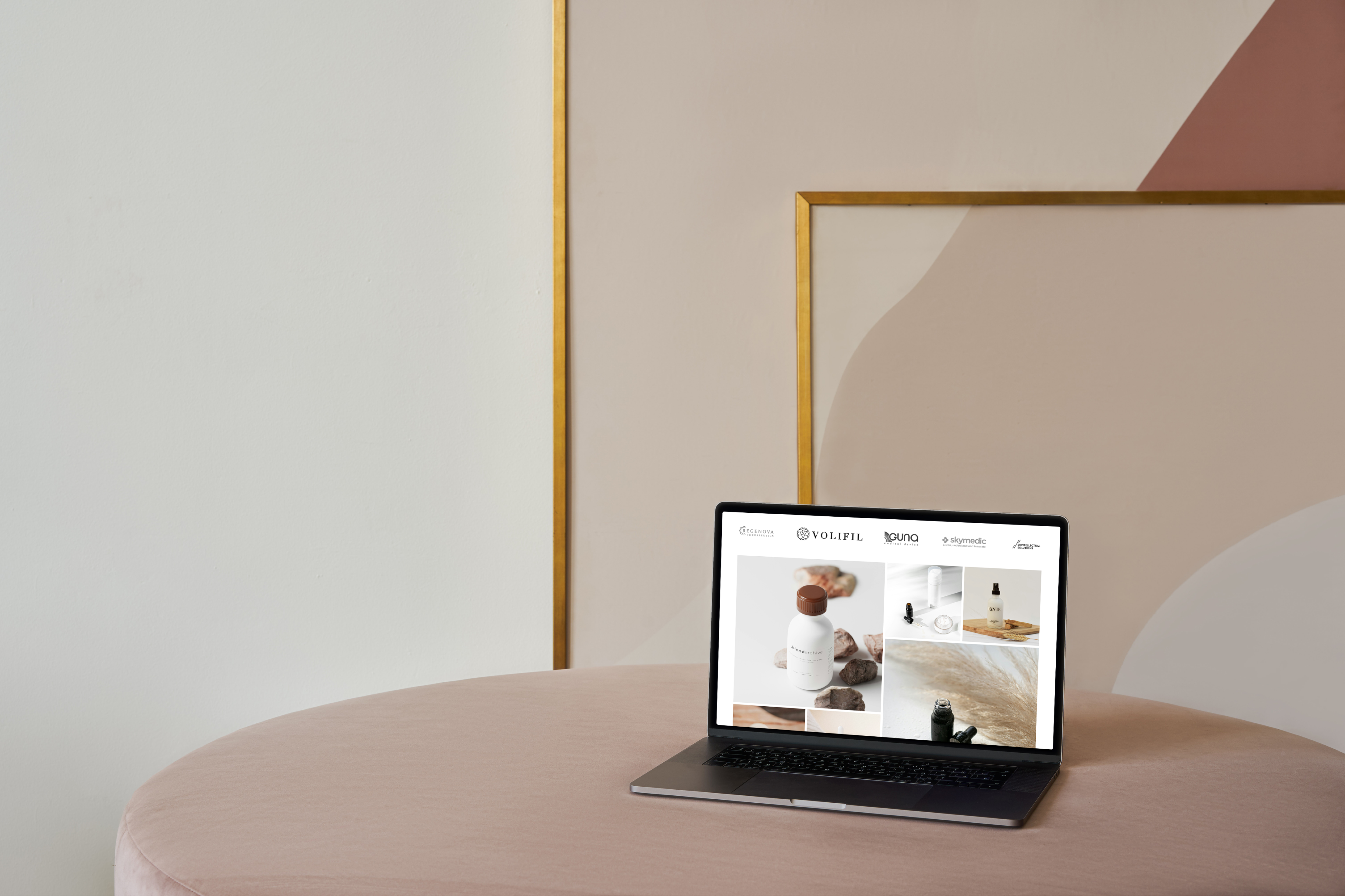 Create a visually appealing and minimalistic website design that aligns with the character of a company distributing medicines and medical cosmetics.