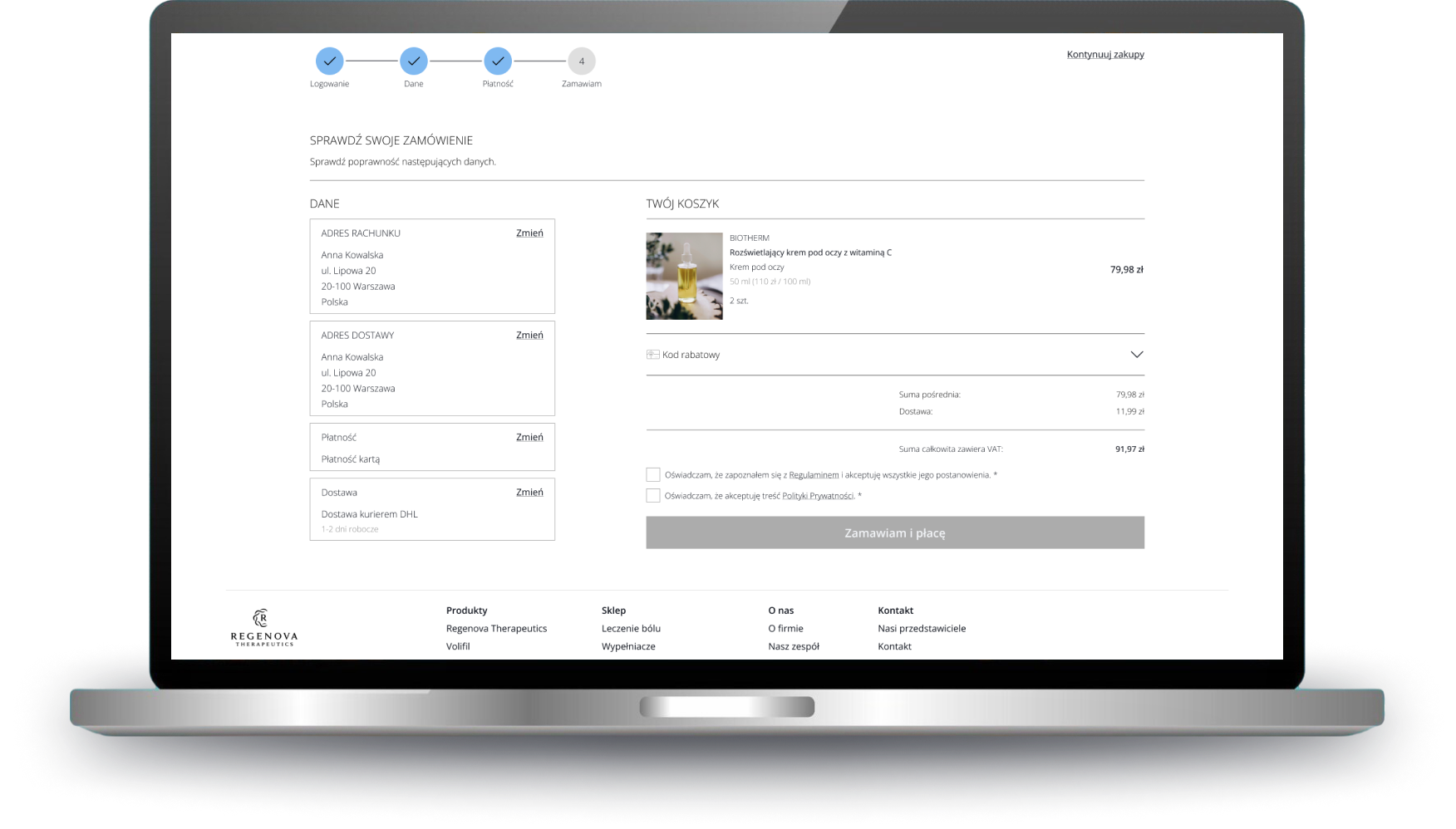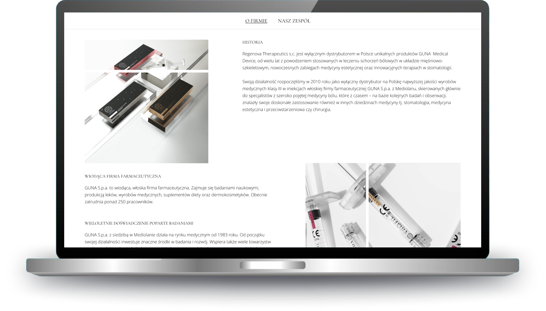 Regenova Therapeutics is a Polish company operating for 15 years, dealing with distributing medicines and medical cosmetics on the Polish market. The company cooperates with group of 2,500 specialists and has its representatives in every voivodeships. In shaping its image, Regenova Therapeutics focuses on professionalism and credibility, which is extremely important in the medical market sector. The client wanted the design to reflect these features of the company’s image.